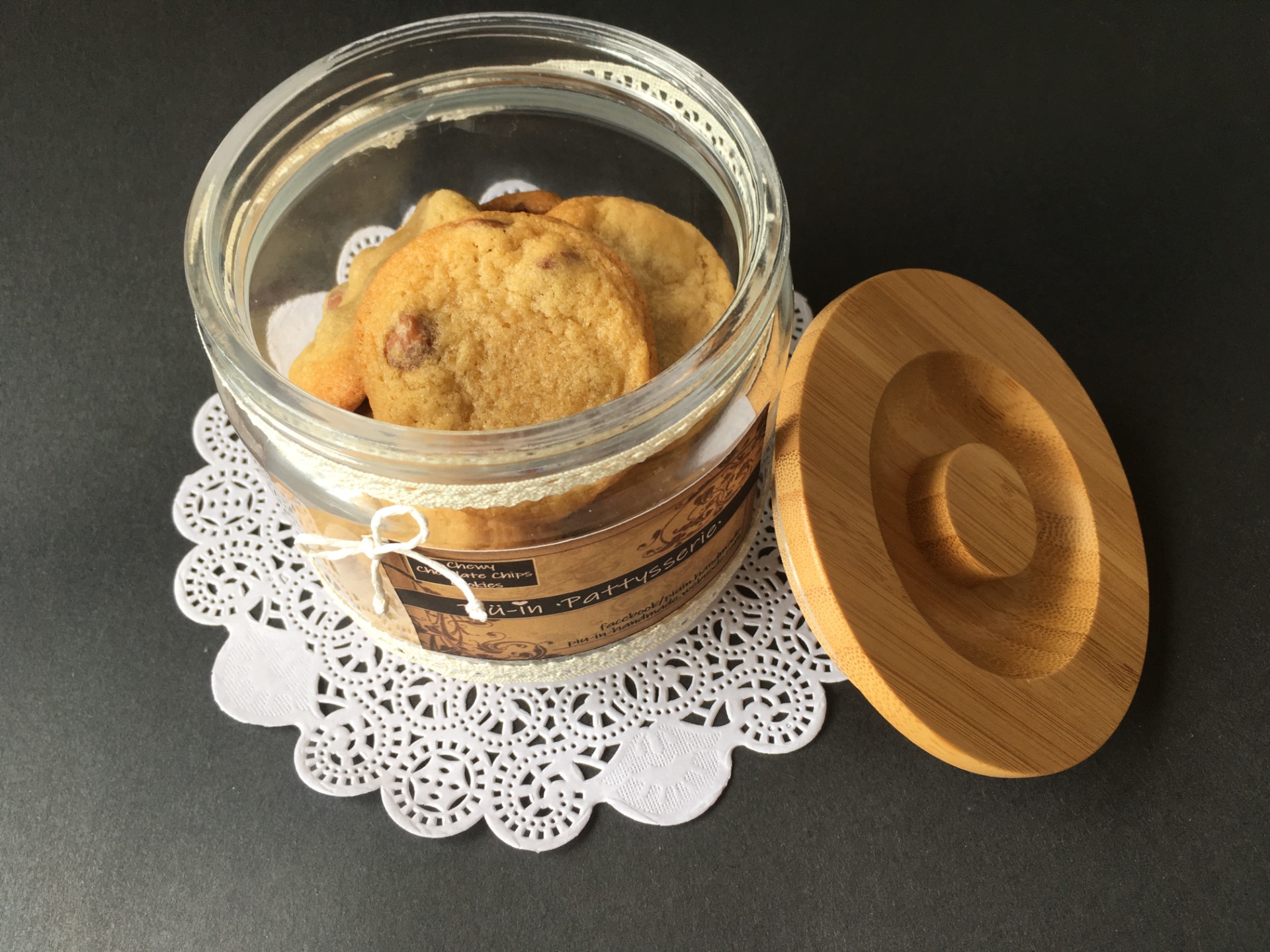 15 biscuits moelleux au pépites de chocolat, dans une boîte joliment décorée et avec une petite carte personnalisée.
